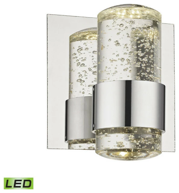 Perfect to bring avant-garde flair to any design space, our impossible-to-ignore Surrey series LED vanities feature remarkably effervescent Bubbled glass, a dynamic cylindrical silhouette, and distinctive Chrome bracing. Indoor use only.