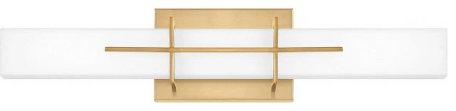 Contemporary Bath Vanity Aged Brass Contemporary Bath Vanity . The Chalk Fields collection is the perfect updated look for your bathroom. The modern style of this fixture is available in an Aged Brass or Polished Chrome finish and is paired with an opal etched glass shade. The integrated LED light source provides energy saving long lasting performance and is low maintenance.