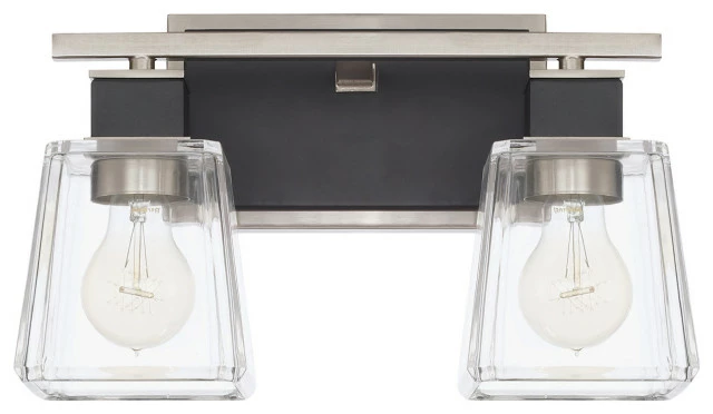 - 2 light vanity with Black Tie finish and clear glass.