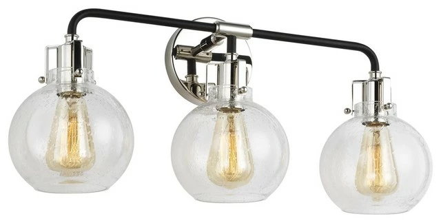 Clara features Clear Seeded glass shades that subtly diffuse the lamping while allowing the exposed bulb to be a central design element of the fixture. Choose the look that’s right for your space with four finish options: Chrome, Satin Nickel, Oil Rubbed Bronze or a two-toned finish of Textured Black with Chrome.
