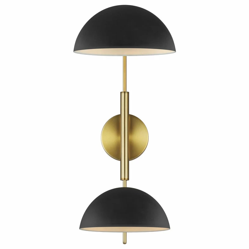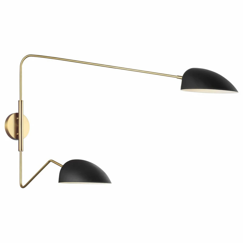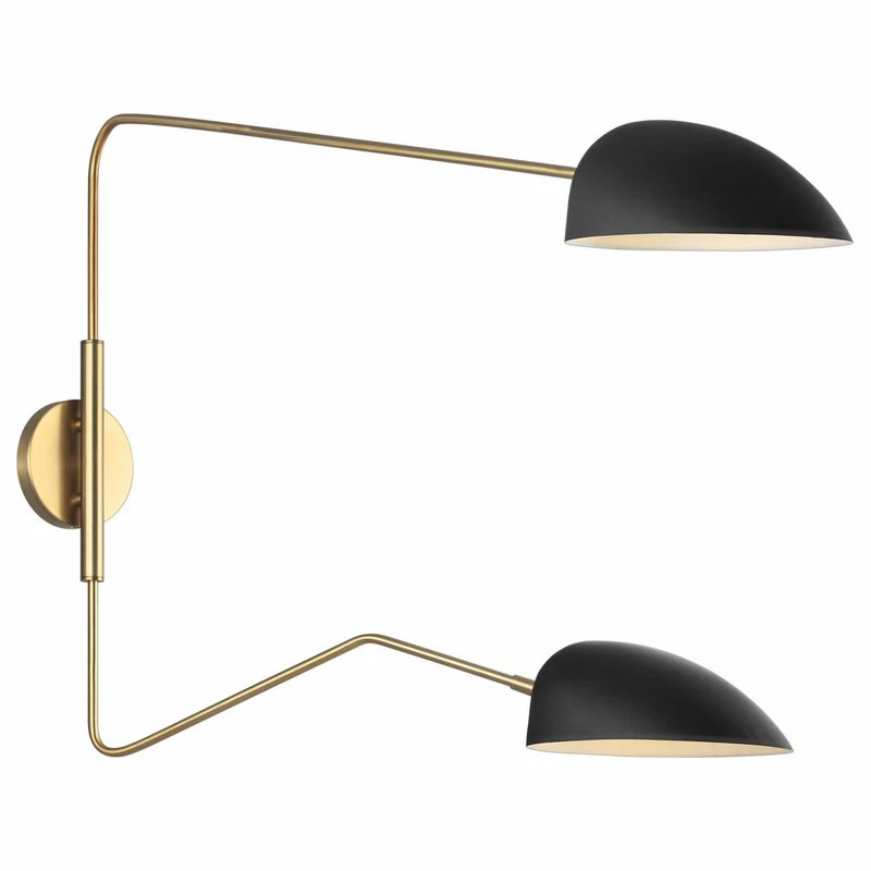 Jane two light swing arm lamp in midnight black offers shadow-free lighting in your powder room, spa, or master bath room. The retro-inspired Jane collection features a luxe two-tone finish of Burnished Brass with Midnight Black or Matte White accents. Adjustable shades on Jane chandeliers enable illumination that perfectly suits your space. Elongated arms and soft curves add dimension and drama to each fixture.
