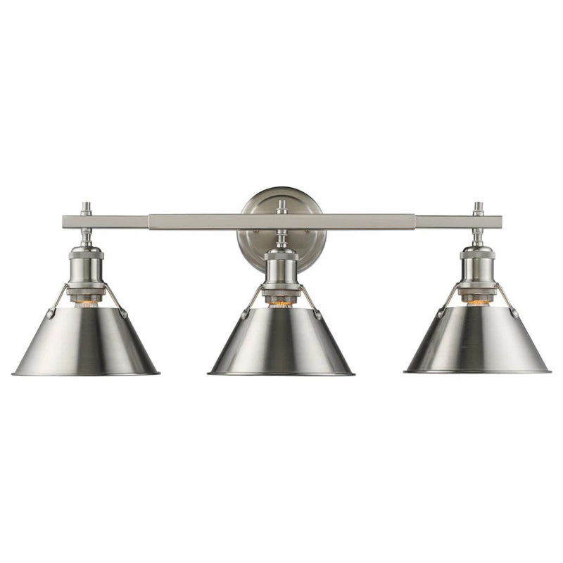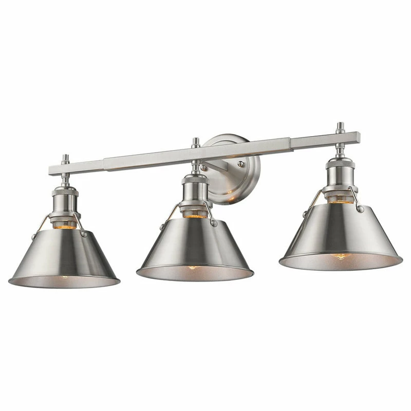 Orwell is an extensive assortment of industrial style fixtures. The beauty and character of the collection are in the refined details. This transitional series works well in a variety of settings. Partial shades shield the eyes from possible hot spots, while the open tops tease onlookers with a view of the sockets and bulbs. The design allows light and heat to escape from above and below the metal shades, providing both task and ambient lighting. Edison bulbs are recommended to compete the vintage, industrial look of the fixtures. A choice-selection of finish and shade color combinations heighten the appeal of the series. Opal glass shades are available for bath fixtures. Single pendants are suspended from woven fabric cords while multi-light fixtures are rod-hung.
