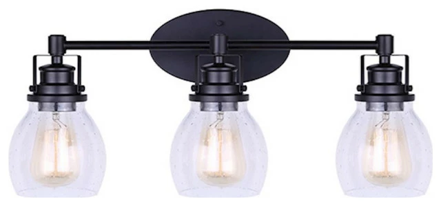 - The vintage style of the CARSON collection gives a beautifully modern treatment to the familiarity and comfort of vanity lighting. Available in 1, 2, 3 and 4 light options in matte black with clear seeded glass shades, the CARSON vanity is sure to find a place in your decorating decor while providing the versatility of being mounted in up or down light positions. This product also comes with Canarm’s Easy Connect push in connection system giving homeowners freedom to change fixtures with a safe and secure installation. Complete the industrial feel by adding vintage style bulbs.