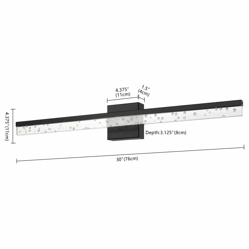 - Lamp: 4.375 inches high x 30 inches wide x 3.125 inches deep
