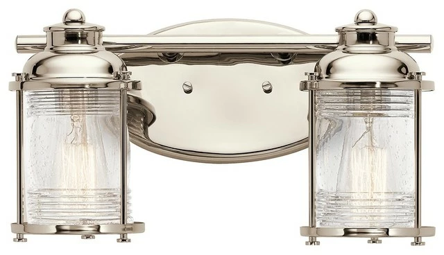 Ashland bay offers a nautical feel with this 2-light vanity. For a vintage inspired look, polished nickel accentuates the beautiful clear seeded glass. To complete the look, optional vintage-style: bulbs shine brightly through. For an added ambiance, nothing compares to ashland bay.