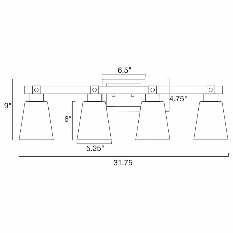 DIMENSIONS: Bathroom Light: 9″ (H) x 31.75″ (L) x 7.5″ Projection from wall, Backplate: 6.5″ (L) x 4.75″ (H) x 0.75″ (W), Glass Shades: 6″ (H) x 5.25″ (D)