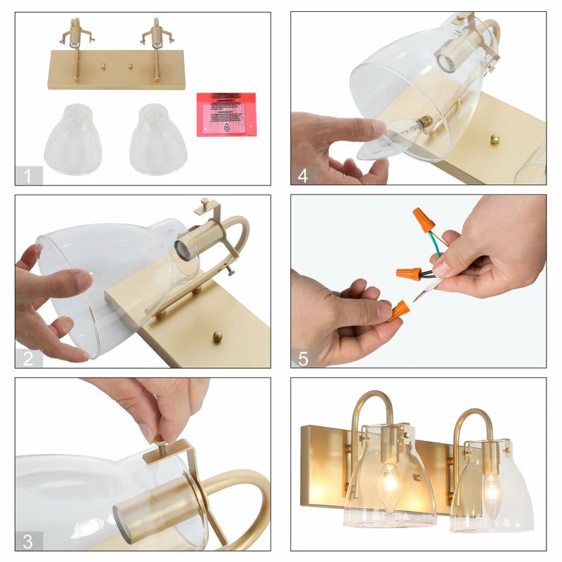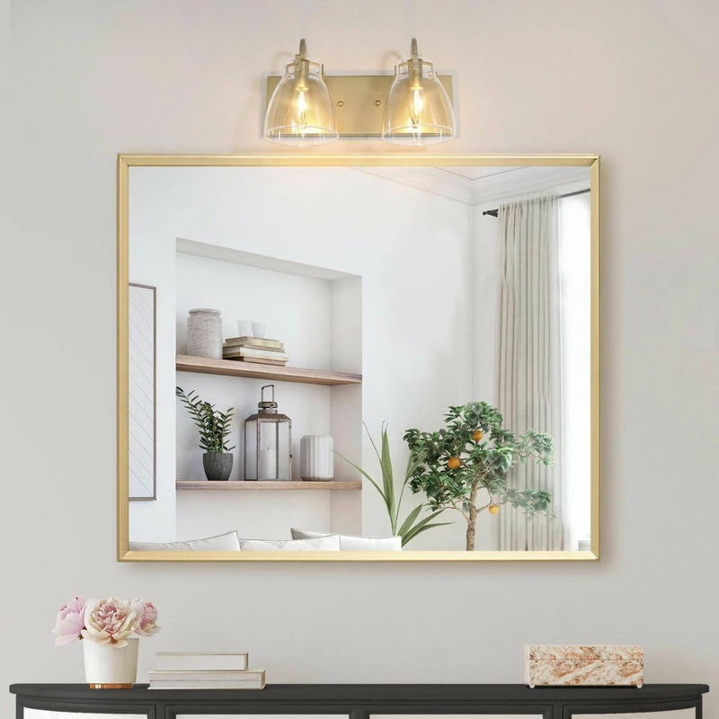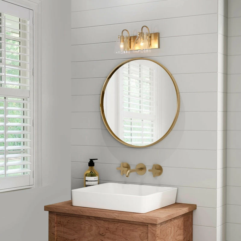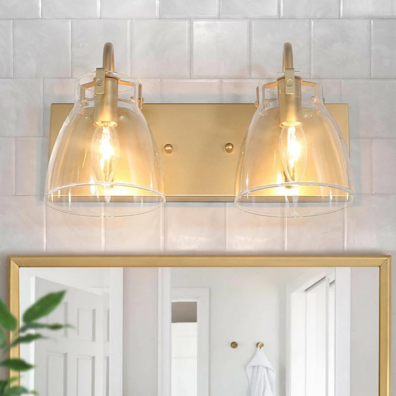 This stunning gold wall vanity light is comprised of two drum shaped glasses and a rose gold tray. Though with the simplistic shape, this vanity will add glamour to your space and shines your room with charm and joy.