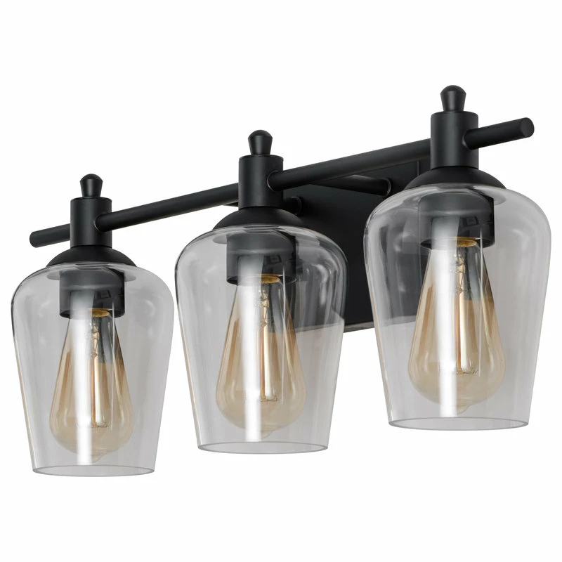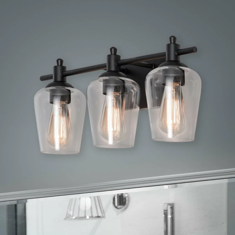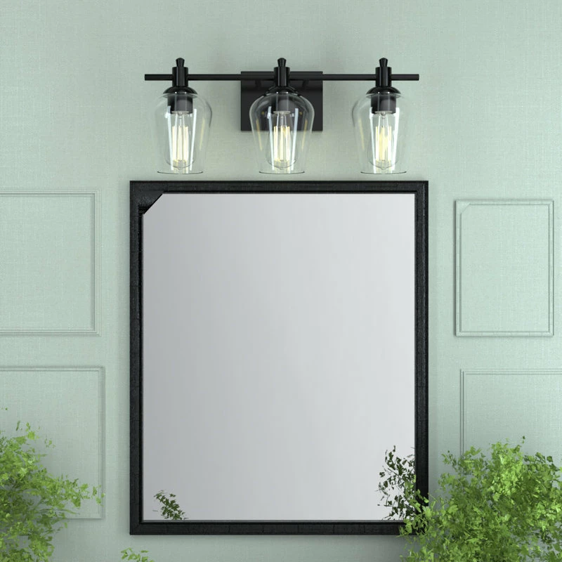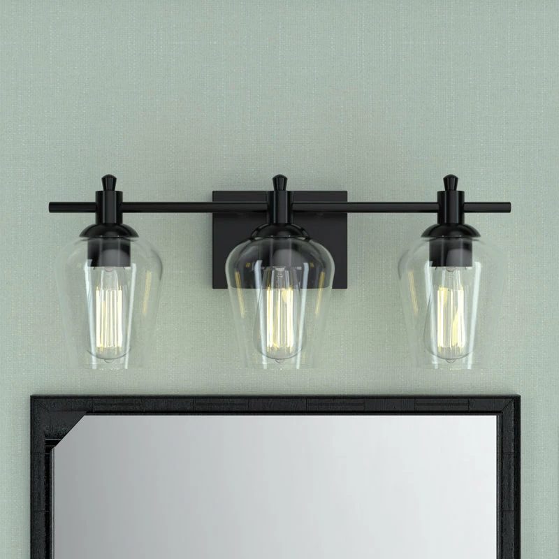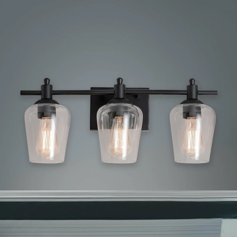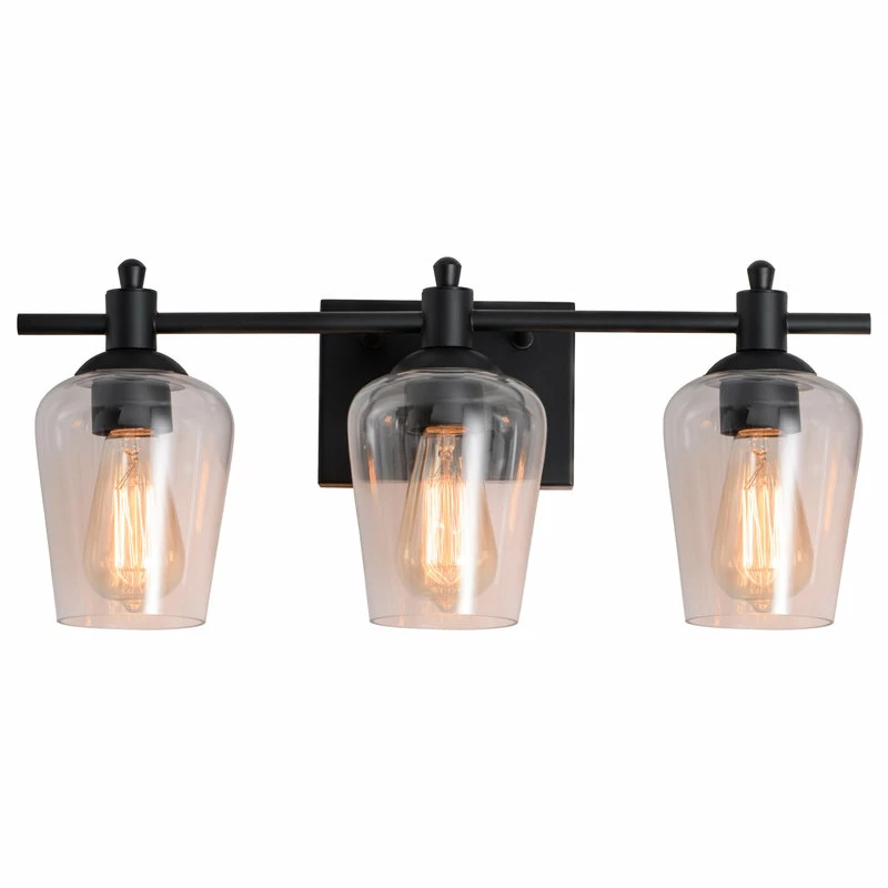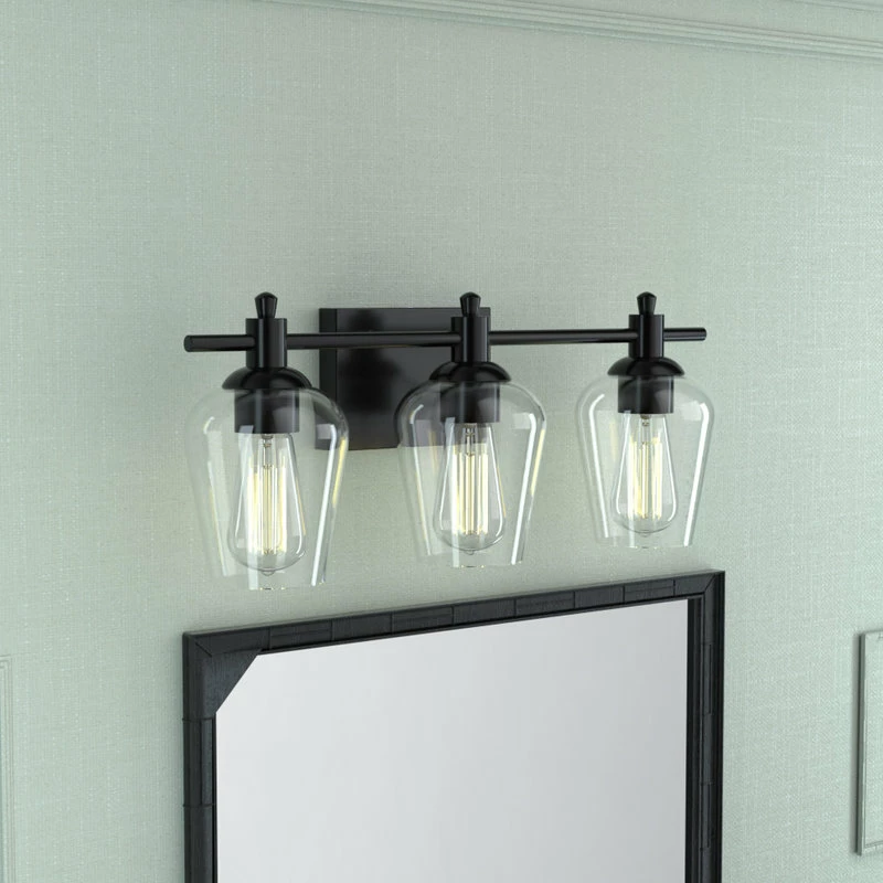 Stunning 3 light modern vanity sconce, perfect for bathroom vanities. Can be installed with the lights pointing up or down, as well as horizontally or vertically. Its steel circular back plate and curved arms bring the charm of a modern farmhouse to your aesthetic. It offers style and versatility above any mirror. Incandescent or LED light bulb compatible (not included).