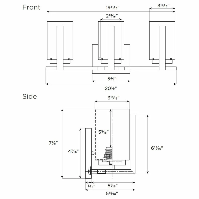 - Overall Dimensions: 20-1/2″ W x 5-15/16″ D x 7-7/8″ H