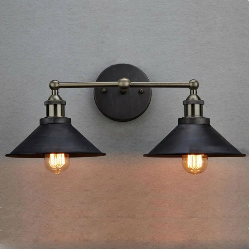Flaunting an antique bronze finish, the wall sconce adds a bit of vintage charm to your aesthetic. Crafted of solid metal and featuring exquisite workmanship, the wall sconce is durable and rustproof. Its metal cone shade and brass lamp holders give your living space an industrial yet classic charm.