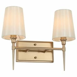 Cheapest 🎉 LALUZ Modern Gold Bathroom Vanity Light With Fabric Shade, 2-Light 💯