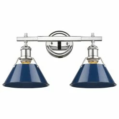 Cheapest 🧨 Golden Lighting 3306-BA2 CH-NVY Orwell 2 Light Bath Vanity, Chrome 🔥