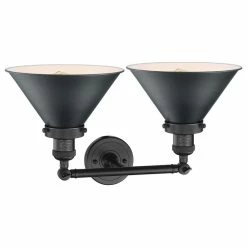 New 👏 Innovations Lighting Large Cone 2-Light LED Bath Fixture, Matte Black, Glass: Clear 🔔