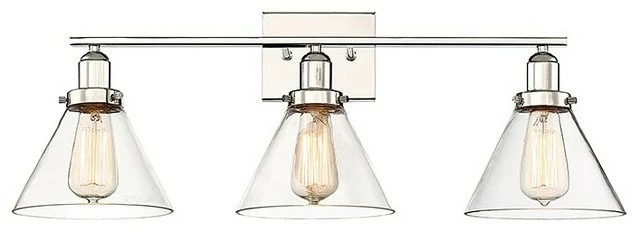 This Savoy House Drake 3-light bath bar has an alluringly simple style with a few choice hardware details and shades of clear glass. Finished in polished nickel.