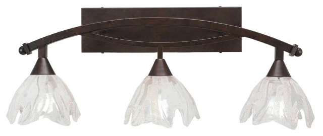 - Bow 3 Light Bath Bar Shown In Bronze Finish with 7″ Italian Ice Glass