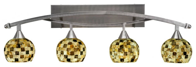 - Bow 4 Light Bath Bar Shown In Brushed Nickel Finish with 6″ Sea Mist Seashell Glass