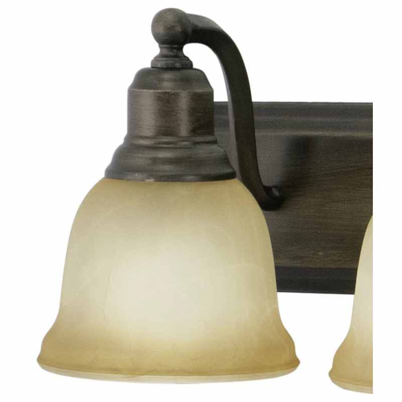 The transitional design of the Lasalle bathroom vanity light fixture blends well with most decors. It features a Parisian bronze finish with amber alabaster glass shades. The full back plate makes off center electrical boxes a non-issue. Versatile reversible mounting option lets you install this fixture up or down. This bathroom fixture is perfect over large vanities or double vanities where there is only one outlet box.